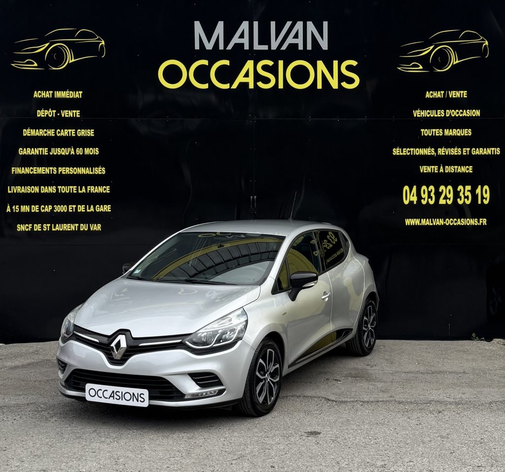 RENAULT CLIO IV (2) 0.9 TCE 90CH, Essence, Boite mécanique, Finition LIMITED, Gris clair métallisée, 5 cv, mise en circulation le 12/09/2017 avec 94 500km.