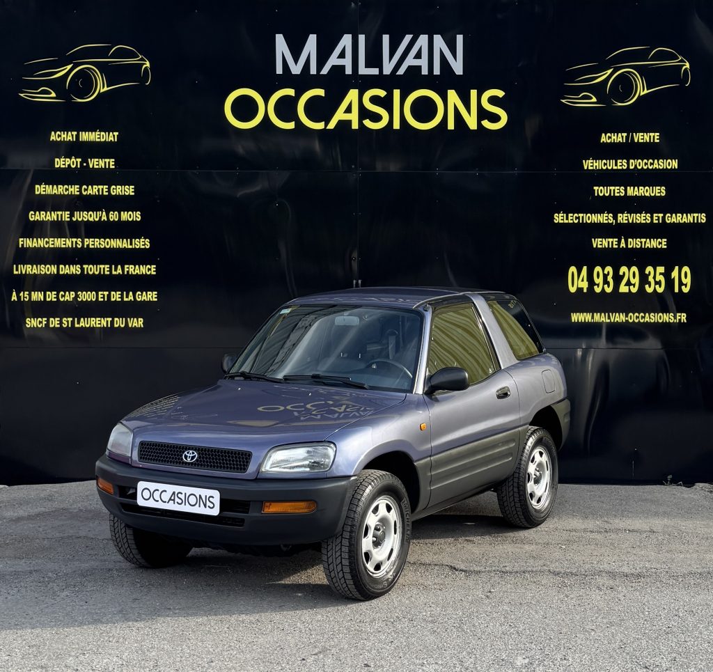 Malvan Occasions vous propose ici une très belle opportunité avec ce Toyota RAV4 3 portes équipé de son moteur 2.0 essence de 128ch en boite mécanique. Véritable 4×4. Véhicule toujours entretenu. Aucun frais à prévoir.